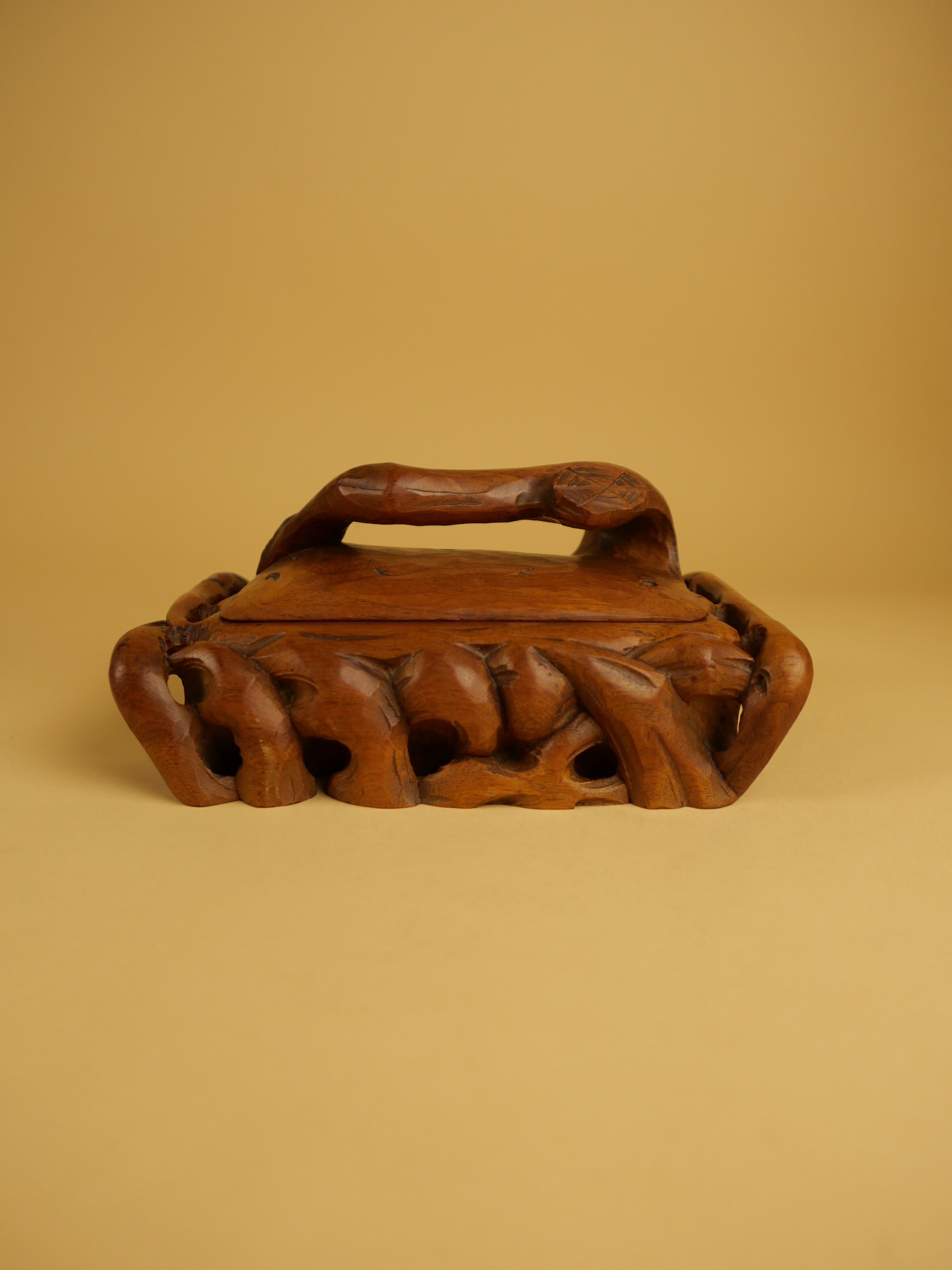 RenseignementsBougeoir en teck de forme torsadée, sculpté sur toutes les faces.